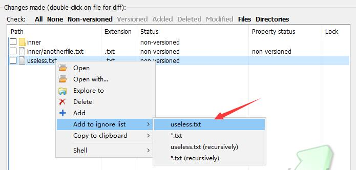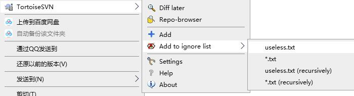 假设我们现在需要忽略掉useless.txt这个文件,使用TortoiseSVN非常方便。