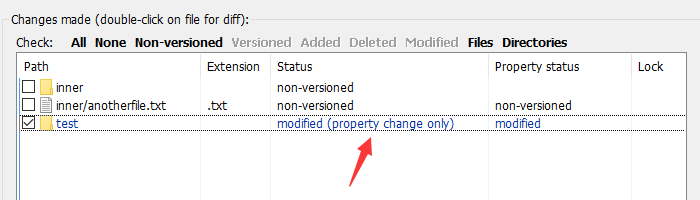 另外,你会发现,当前文件的父目录会有一个属性修改的变动,我们需要把这个变动提交到上去,这样其他协作者也同步了这个忽略。