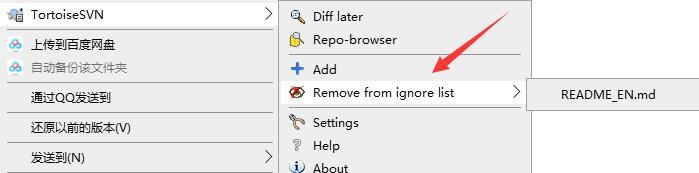如果你需要取消忽略,操作跟添加忽略时一样,再操作一次就行了,只是提示语变成了 Remove from …