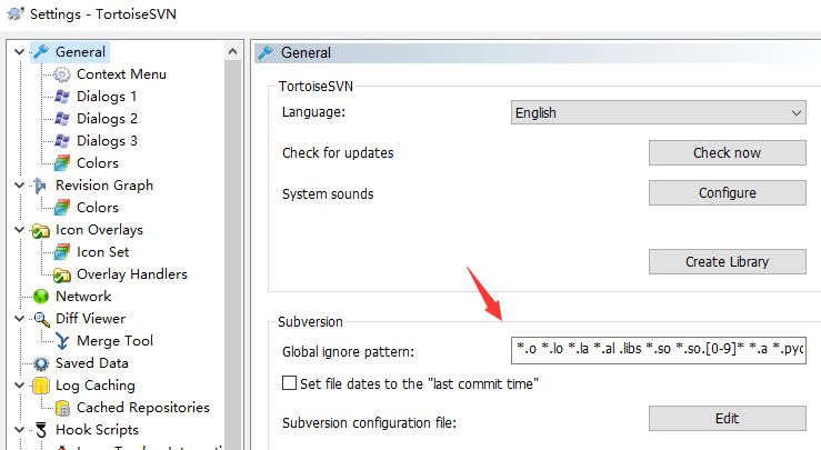 非常简单,右键–>TortoiseSVN–>Settings,打开SVN的设置页面,填写需要忽略的内容