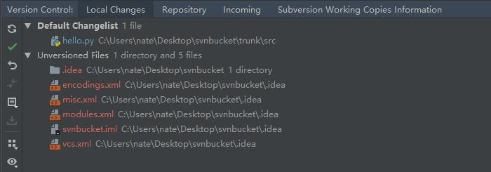 集成后,在Pycharm的左下角可以看到一个 Version Control的界面,这里可以看到哪些文件变动了