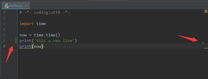 另外 Pycharm 有个很方便的地方,你改动的行会有特殊的颜色表示,这样写代码时很容易就知道哪些地方修改过,方便快速定位