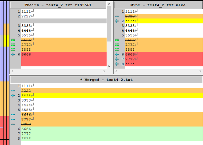 这一块是进入版本内容查看时的可视化效果,右边的颜色条对应不同的意思,这个大家有兴趣可以自行学习,简单说几个重要的,黄色Add(添加进去的代码),橙色Remove(删除的代码),红色Conficted(冲突的代码)