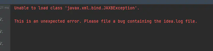 1 | Unable to load class 'javax.xml.bind.JAXBException'. |