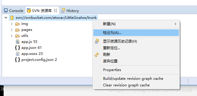 现在我们就可以在插件界面看到我们的仓库内容了,右键就可以检出代码了